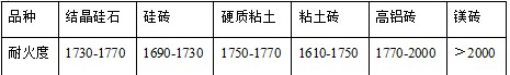 耐火度可以作為選用耐火材料時(shí)綜合評(píng)價(jià)判斷的一個(gè)參考數(shù)據(jù)。原料的耐火度測(cè)定可以判斷原料的雜質(zhì)成分與含量。常見耐火原料及耐火制品的耐火度指標(biāo)為:
