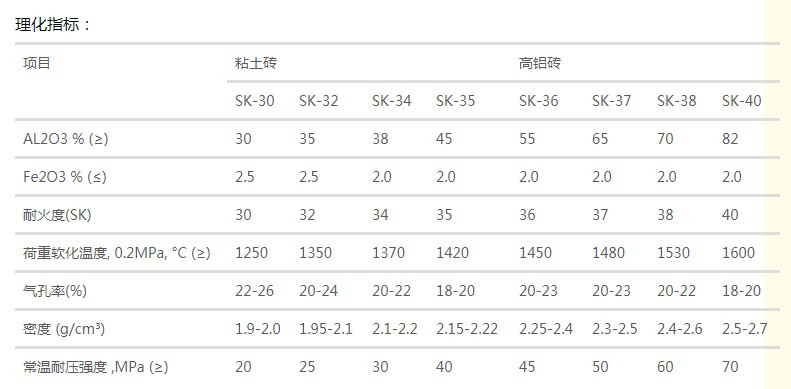 SK系列耐火磚的分類及理化指標(biāo)